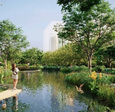 Beautifully crafted dense green pockets with shaded trails, nature walks, and forest-themed landscaping for peaceful, wellness-focused living.